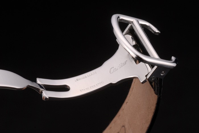 Back: Brushed stainless steel screwed down back with Cartier Replica engravings Gender: UominiMovement: Quarzo (Batteria) Quality: Svizzera ETA Case: Polished stainless steel case Bracelet: Cartier Replica heat embossed black crocodile leather strap with polished stainless steel fold-in buckle clasp Bracelet Length: 195 x 20 mm Bezel: Polished stainless steel bezel with integrated crown Diameter: 45 x 42 mm Glass: Sapphire Crystal Crown: Sapphire crystal stud stainless steel cutwork crown encased in a niche cut out into the bezel Case Thickness: 12 mm