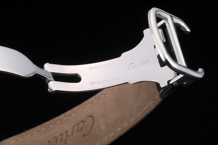 Back: Brushed stainless steel screwed down back with Cartier Replica engravings Gender: DonneMovement: Quarzo (Batteria) Quality: Svizzera ETA Case: Polished stainless steel case Bracelet: Cartier Replica heat embossed black crocodile leather strap with polished stainless steel fold-in buckle clasp Bracelet Length: 190 x 18 mm Bezel: Polished stainless steel bezel with integrated crown Diameter: 40 x 38 mm Glass: Sapphire Crystal Crown: Sapphire crystal stud stainless steel cutwork crown encased in a niche cut out into the bezel Case Thickness: 1.5 mm