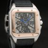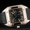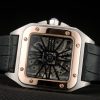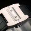 Bracelet: Cartier Replica heat embossed black crocodile leather strap with brushed stainless steel snap-in clasp with push release button on the side