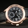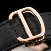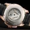 Back: Brushed stainless steel screwed down back with transparent center and Cartier Replica inscriptions Gender: UominiMovement: Cinetico (Automatico) Quality: Giapponese Miyota Color: Nero Case: 18k rose-gold plated case Bracelet: Cartier Replica heat embossed black crocodile leather strap with rose-gold plated buckle clasp Bracelet Length: 200 x 23 mm Bezel: 18k rose-gold plated bezel Band Type: Pelle Diameter: 49 x 43 mm Glass: Sapphire Crystal Crown: Sapphire crystal stud octagonal rose-gold plated crown placed on a long oblong pedestal Case Thickness: 13 mm