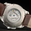 Back: Brushed stainless steel screwed down back with transparent center and Cartier Replica inscriptions Gender: UominiMovement: Cinetico (Automatico) Quality: Giapponese Miyota Case: Brushed stainless steel case Bracelet: Cartier Replica heat embossed brown crocodile leather strap with rose-gold plated buckle clasp Bracelet Length: 200 x 23 mm Bezel: Diamond studded rose-gold plated bezel Band Type: Pelle Diameter: 46 x 42 mm Glass: Sapphire Crystal Crown: Sapphire crystal stud octagonal polished stainless steel crown placed on a long oblong pedestal Case Thickness: 13 mm