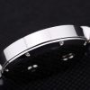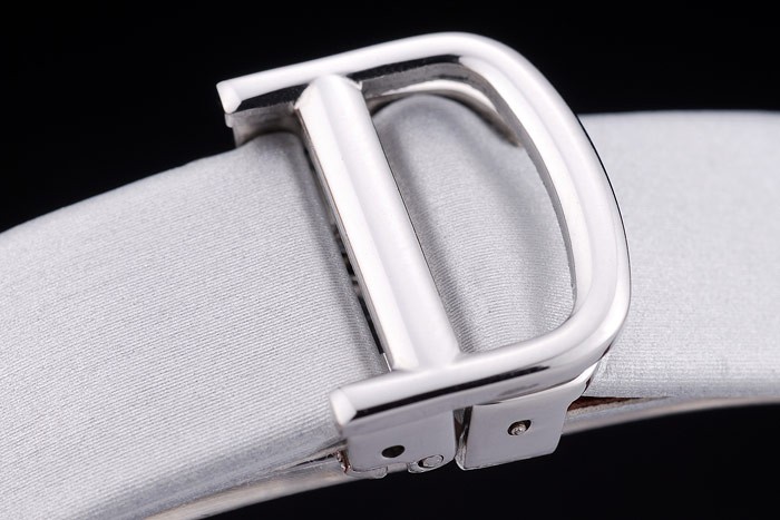 Bracelet: Heat embossed Cartier Replica black textured leather strap with Cartier Replica inscribed polished stainless steel fold-in flip clasp