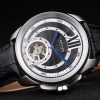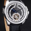 Back: Cartier Replica engraved brushed stainless steel screwed down back with mechanics-revealing transparent center Gender: UominiMovement: Cinetico (Automatico) Quality: Giapponese Miyota Color: Nero Case: Brushed stainless steel case Bracelet: Heat embossed Cartier Replica stamped black crocodile leather strap with stainless steel hidden clasp Bracelet Length: 210 x 23 mm Bezel: Brushed stainless steel bezel Band Type: Pelle Diameter: 50 x 43 mm Watch Clasp: Flip Clasp Glass: Sapphire Crystal Crown: Brushed stainless steel hexagonal crown with blue crystal stud Case Thickness: 15 mm