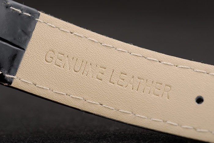 Bracelet: Black crocodile leather strap with heat embossed Chopard Replica stamp and Chopard Replica engraved stainless steel hook-buckle clasp