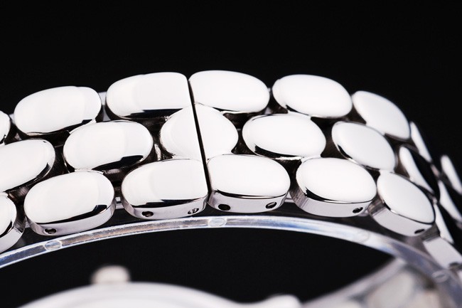 Bracelet: Glamorous finely linked polished stainless steel bracelet with hidden clasp