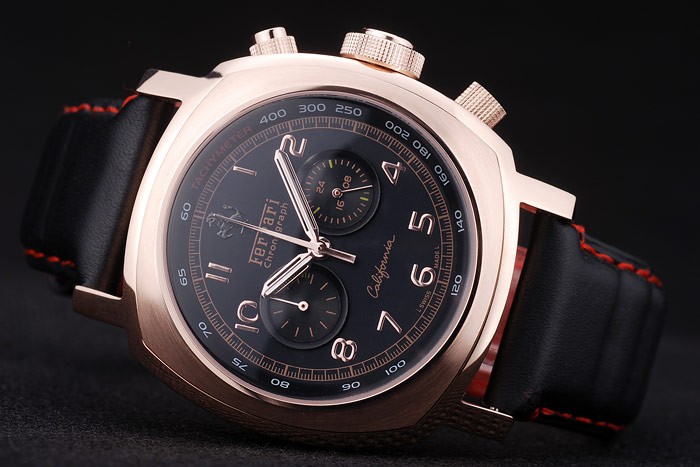 Crown: Ferrari Replica logo engraved rose-gold plated fine cutwork crown with two smaller cutwork push-button crowns on either side of it