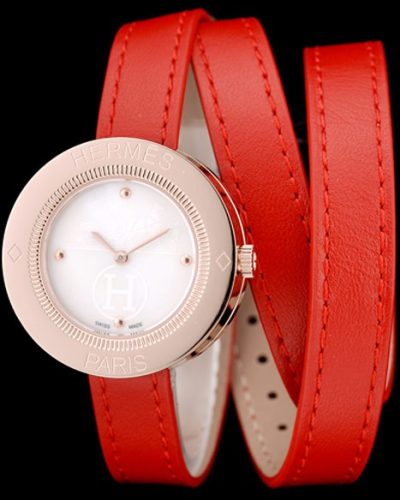 Back: Rose-gold plated screwed down back with stainless steel center and Hermes Replica Paris engraving