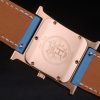 Back: 18k rose-gold plated screwed down back with Hermes Replica inscriptions Gender: DonneMovement: Quarzo (Batteria) Quality: Giapponese Miyota Case: 18k rose-gold plated stainless steel case Bracelet: Hermes Replica heat embossed blue leather strap with white thread stitching and Hermes Replica engraved 18k rose-gold plated hook-buckle clasp Bracelet Length: 190 x 20 mm Bezel: 18k rose-gold plated diamond encrusted H-logo bezel Band Type: Pelle Diameter: 36 x 26 mm Watch Clasp: Buckle Glass: Sapphire Crystal Crown: 18k rose-gold plated cutwork crown with Hermes Replica logo Case Thickness: 7 mm