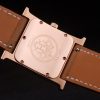 Back: 18k rose-gold plated screwed down back with Hermes Replica inscriptions Gender: DonneMovement: Quarzo (Batteria) Quality: Giapponese Miyota Case: 18k rose-gold plated stainless steel case Bracelet: Hermes Replica heat embossed tan leather strap with white thread stitching and Hermes Replica engraved 18k rose-gold plated hook-buckle clasp Bracelet Length: 190 x 20 mm Bezel: 18k rose-gold plated diamond encrusted H-logo bezel Band Type: Pelle Diameter: 36 x 26 mm Watch Clasp: Buckle Glass: Sapphire Crystal Crown: 18k rose-gold plated cutwork crown with Hermes Replica logo Case Thickness: 7 mm