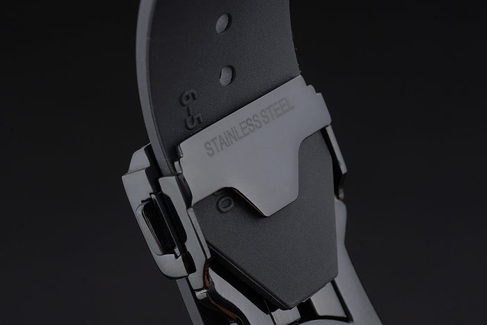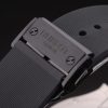 Bracelet: Hublot Replica Geneve heat embossed ribbed black rubber strap with Hublot Replica Geneve engraved ion-plated push release hook clasp