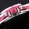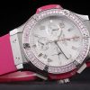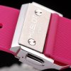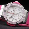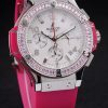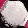 Bracelet: Textured pink rubber band with polished stainless steel push-button hook clasp and Hublot Replica engravings