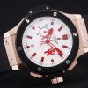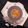 Back: Hublot Replica Big Bang engraved ion-plated screwed down bezel with Manchester United logo Gender: UominiMovement: Quarzo (Batteria) Quality: Giapponese Miyota Color: Nero Case: 18k rose-gold plated case Bracelet: Heat embossed logo and Hublot Replica Geneve ribbed black rubber strap with Hublot Replica Geneve engraved fold-over rose-gold plated push-release hook clasp Bracelet Length: 180 x 24 mm Bezel: Screwed down ion-plated bezel Band Type: Gomma Diameter: 54 x 42 mm Watch Clasp: Flip Clasp Crown: Rose-gold plated cutwork crown with Hublot Replica logo rubber stud and ion-plated Reset and Start button crowns on either side of it Case Thickness: 16 mm