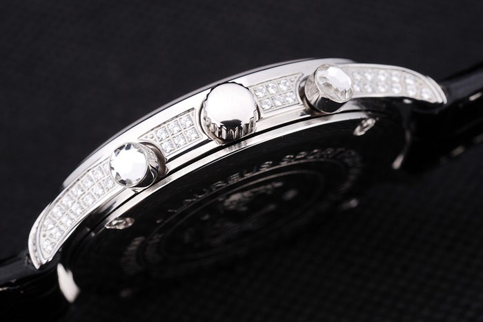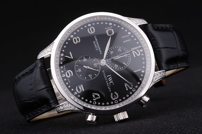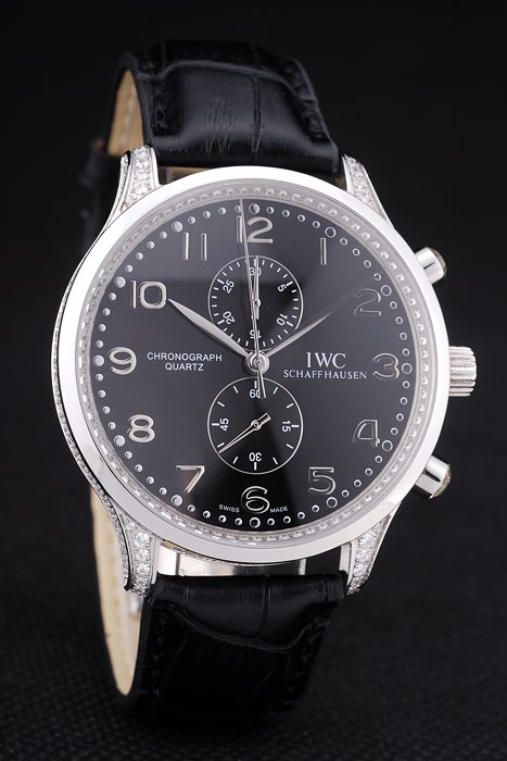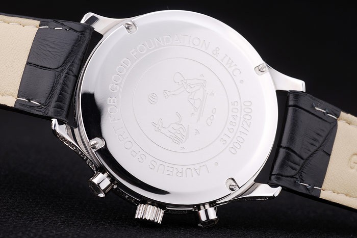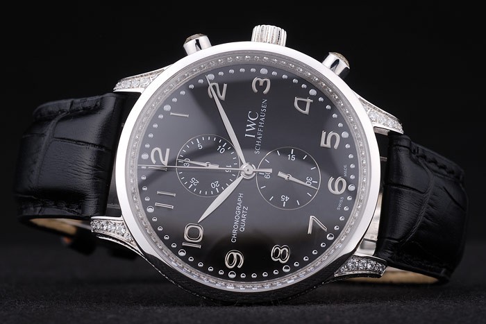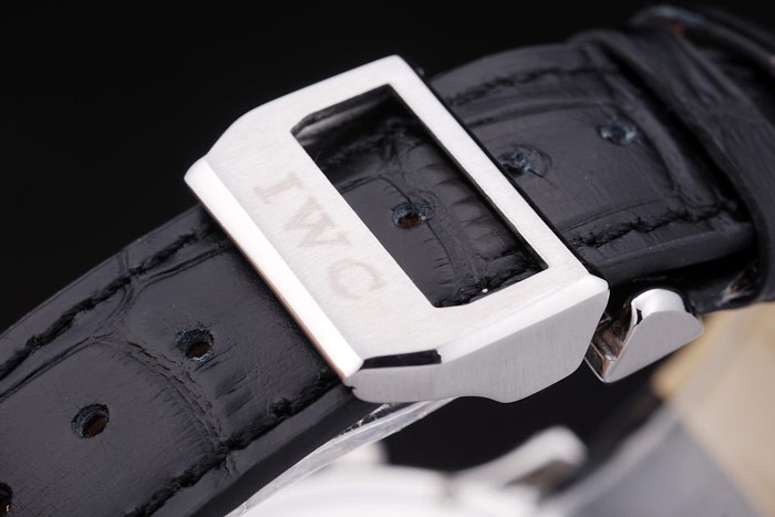 Back: Polished stainless steel snap-in back with IWC Replica inscription Gender: UominiMovement: Quarzo (Batteria) Quality: Giapponese Miyota Color: Nero Case: Crystal studded polished stainless steel case Bracelet: IWC Replica Schaffhausen heat embossed black crocodile leather strap with IWC Replica inscribed stainless steel hook-buckle clasp Bracelet Length: 210 x 22 mm Bezel: Polished stainless steel bezel Band Type: Pelle di coccodrillo Diameter: 52 x 46 mm Watch Clasp: Flip Clasp Crown: Polished stainless steel cutwork crown with IWC Replica logo engraving and two smaller cutwork crowns on either side of it Case Thickness: 11 mm