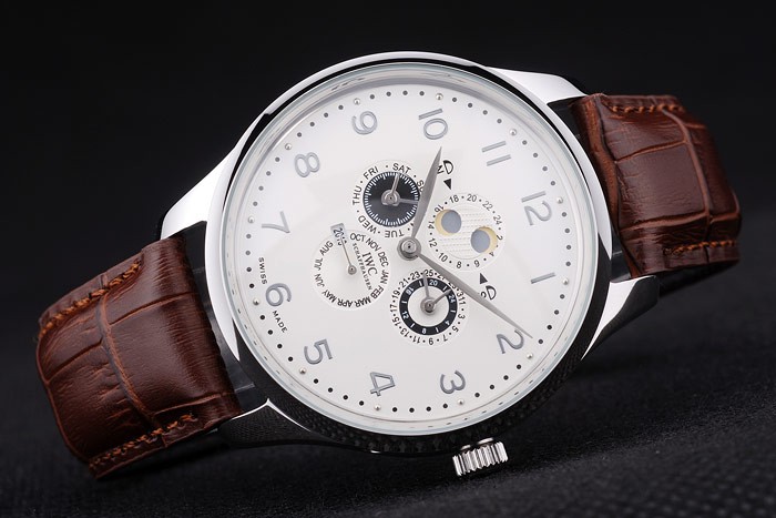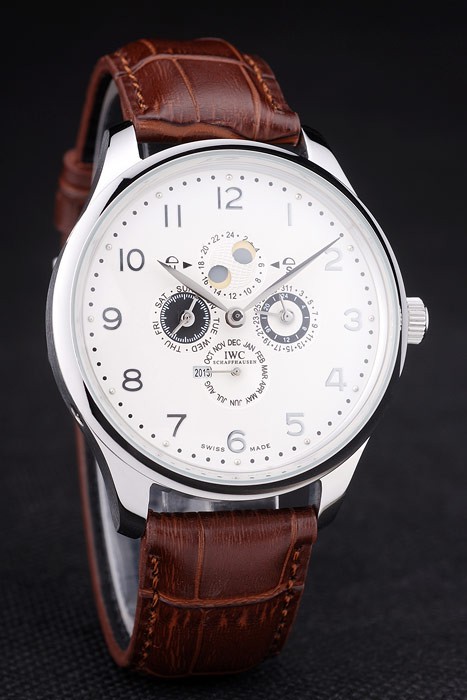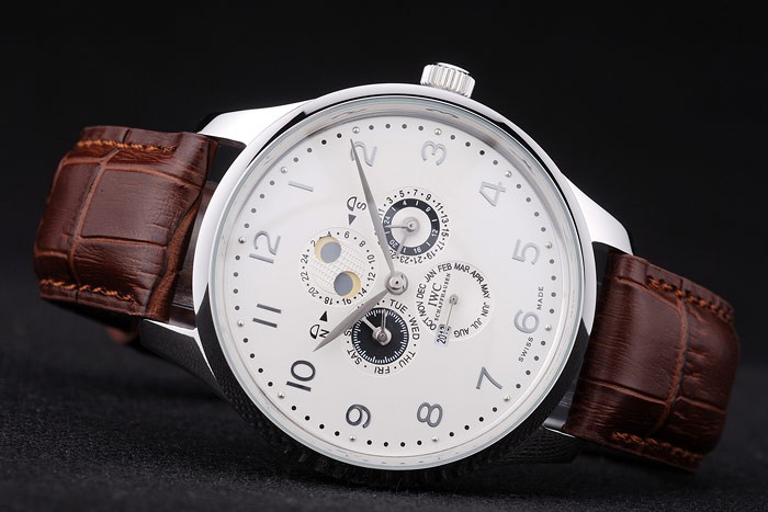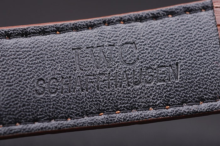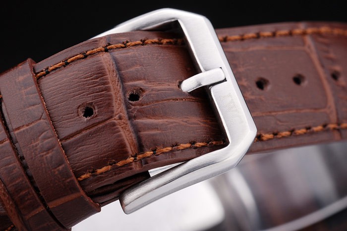 Bracelet: IWC Replica Schaffhausen heat embossed brown crocodile leather strap with IWC Replica inscribed stainless steel hook-buckle clasp