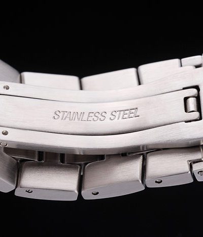 Bracelet: Stainless steel link bracelet with IWC Replica inscribed hidden clasp