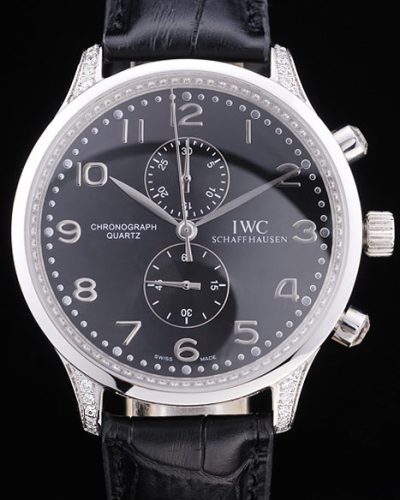 Crown: Polished stainless steel cutwork crown with IWC Replica logo engraving