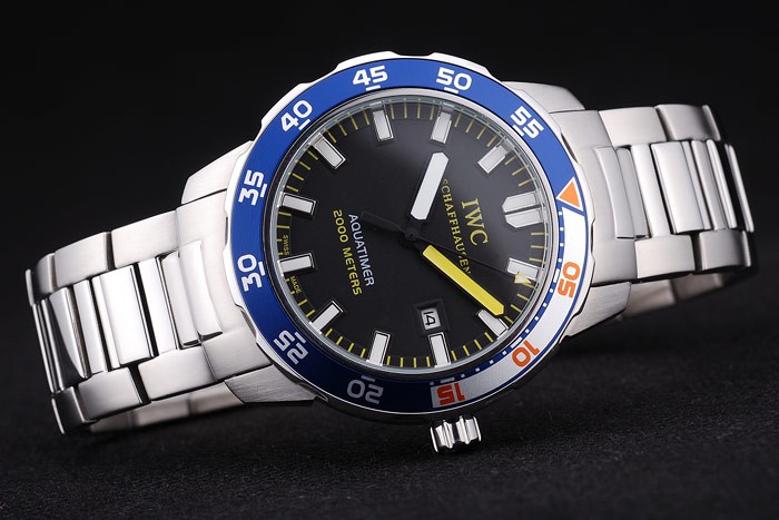 Back: Brushed stainless steel screwed down back with IWC Replica inscription Gender: UominiMovement: Cinetico (Automatico) Quality: Giapponese Miyota Color: Argento Case: Polished stainless steel case Bracelet: Stainless steel link bracelet with IWC Replica inscribed hidden clasp Bracelet Length: 200 x 22 mm Bezel: Blue enameled polished stainless steel cutwork bezel with minute markers Band Type: Acciaio inossidabile Diameter: 54 x 46 mm Watch Clasp: Flip Clasp Crown: Polished stainless steel cutwork crown with IWC Replica logo engraving Case Thickness: 13.5 mm