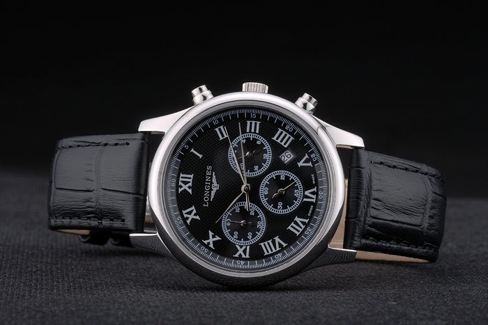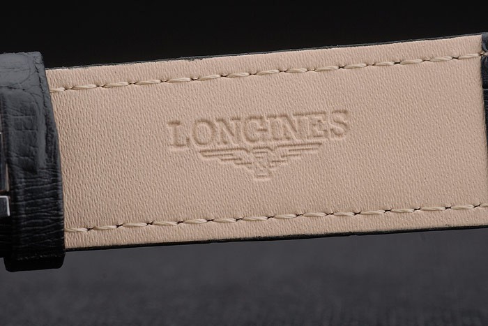 Back: Polished stainless steel snap in back with Longines Replica inscriptions Gender: UominiMovement: Quarzo (Batteria) Quality: Giapponese Miyota Case: Polished stainless steel case Bracelet: Longines Replica heat embossed black crocodile leather strap with Longines Replica and logo inscribed polished stainless steel hook clasp Bracelet Length: 195 x 20 mm Bezel: Polished stainless steel bezel Diameter: 45 x 39 mm Glass: Sapphire Crystal Crown: Polished stainless steel cutwork crown with Longines Replica logo and a push button crown on either side of it Case Thickness: 11 mm