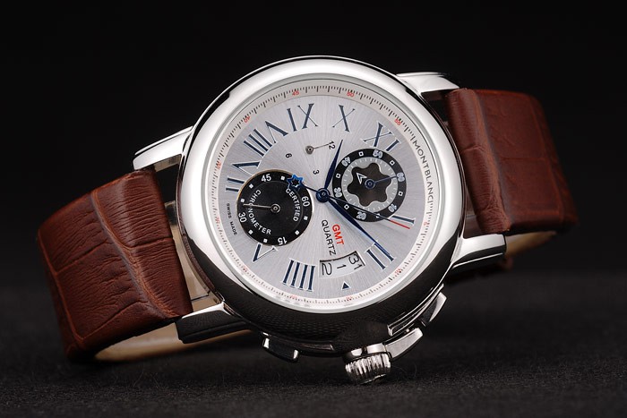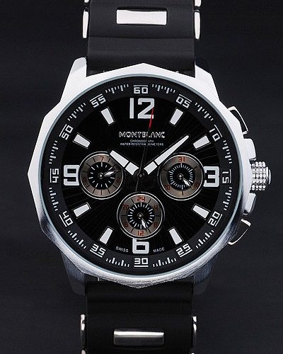 Crown: Polished stainless steel cutwork crown with MontBlanc Replica logo and two polished stainless steel push button crowns on its right and a push button crown to its left