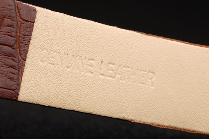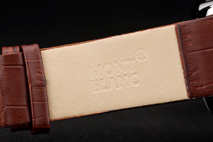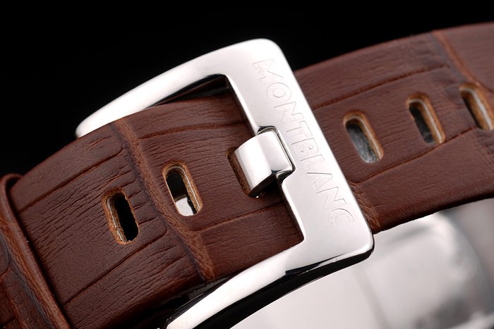 Bracelet: MontBlanc Replica heat embossed brown crocodile leather strap with MontBlanc Replica inscribed polished stainless steel hook-buckle clasp