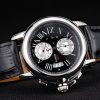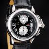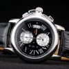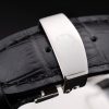 Bracelet: MontBlanc Replica heat embossed black crocodile leather strap with MontBlanc Replica logo inscribed polished stainless steel hidden hook clasp