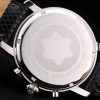 Crown: Polished stainless steel rounded cutwork crown with MontBlanc Replica logo and two polished stainless steel push button crowns on either side of it