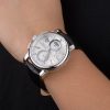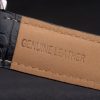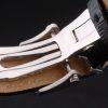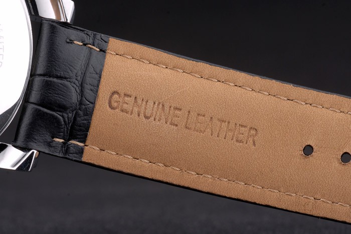 Bracelet: Heat embossed MontBlanc Replica black crocodile leather strap with MontBlanc Replica name and logo engraved polished stainless steel flip-over hook clasp