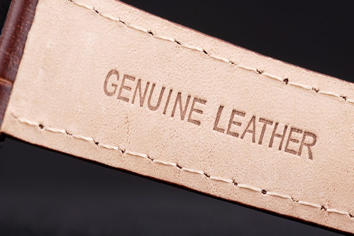 Bracelet: Heat embossed Nomos Replica Glashutte brown crocodile leather strap with NOMOS engraved stainless steel hook-buckle clasp