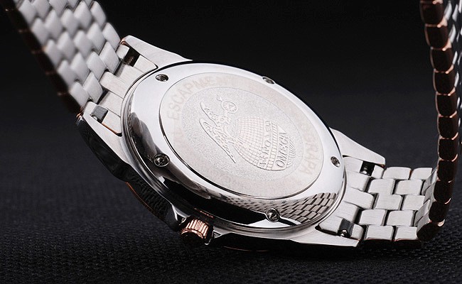 Back: Stainless steel screwed down case back with Omega Replica inscriptions Gender: UominiMovement: Quarzo (Batteria) Quality: Giapponese Miyota Case: Polished stainless steel case Bracelet: Rose-gold plated and brushed stainless steel link bracelet with hidden clasp Bracelet Length: 187 x 20 mm Bezel: 18k rose-gold bezel Band Type: Acciaio inossidabile Diameter: 48 x 39 mm Glass: Sapphire Crystal Crown: Rose-gold cutwork crown with Omega Replica logo Case Thickness: 10 mm