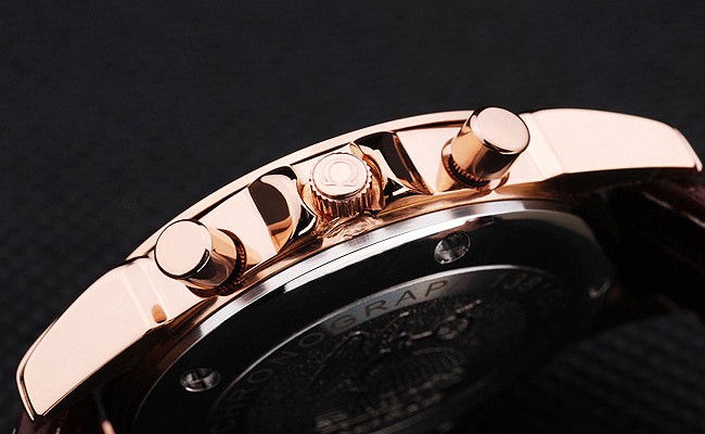 Crown: Yellow gold cutwork crown with Omega Replica logo plus two additional crowns, one on either side of it