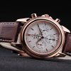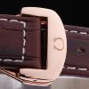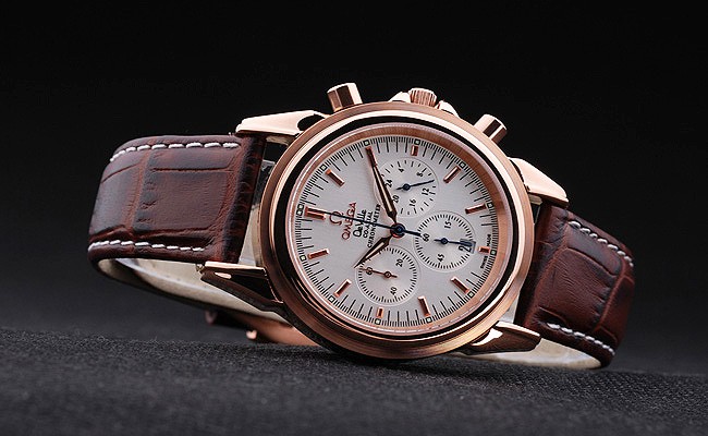 Bracelet: Brown crocodile leather strap with white stitching and Omega Replica logo engraved yellow gold hook-buckle clasp