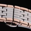 Bracelet: Rose-gold plated and brushed stainless steel link bracelet with push-button release hidden clasp