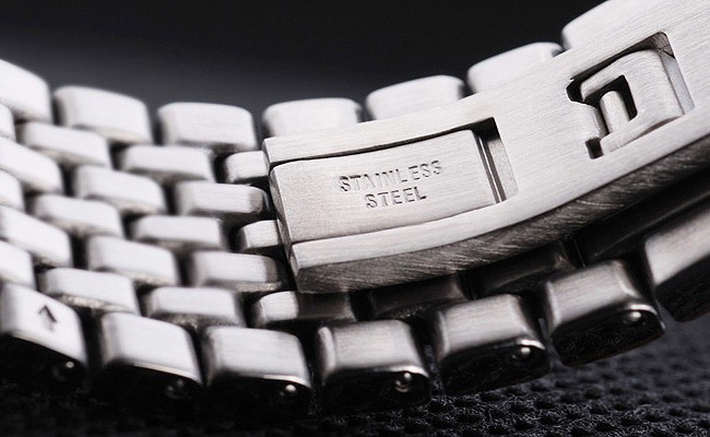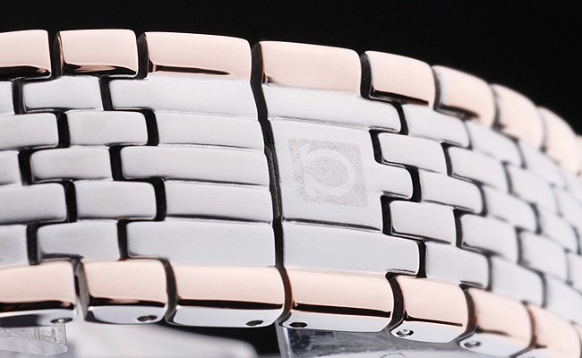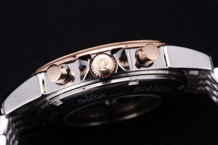 Crown: Polished stainless steel cutwork crown with Omega Replica logo