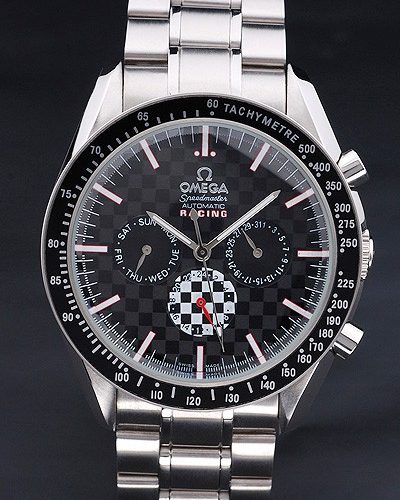 Back: Stainless steel push-in case back with Omega Replica engravings Gender: UominiMovement: Cinetico (Automatico) Quality: Giapponese Miyota Case: Brushed stainless steel case Bracelet: Brushed and polished stainless steel link bracelet with Omega Replica inscription fold-in push-button clasp Bracelet Length: 195 x 20 mm Bezel: Ion-plated bezel with tachymeter Band Type: Acciaio inossidabile Diameter: 47 x 41 mm Watch Clasp: Flip Clasp Glass: Sapphire Crystal Crown: Polished stainless steel cutwork crown with Omega Replica logo plus two smaller crowns on either side of it Case Thickness: 15 mm
