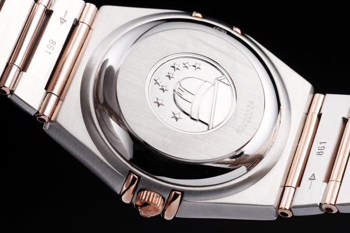 Crown: 18k rose-gold cutwork crown with Omega Replica logo