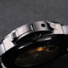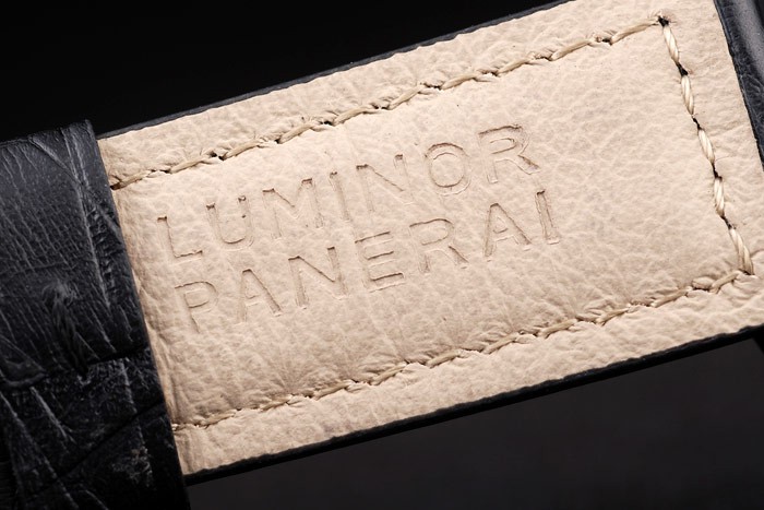 This watch has AR glass. The face color will appear different colors depending on how the light falls on it. Back: Ion-plated stainless steel rimmed transparent snap-in back with Panerai Replica engraving Gender: UominiMovement: Cinetico (Automatico) Quality: Giapponese Miyota Color: Nero Case: Ion-plated stainless steel case Bracelet: Black crocodile leather strap with white stitching and heat embossed Luminor Panerai Replica stamp and ion-plated stainless steel hook-buckle clasp with Panerai Replica engraving Bracelet Length: 215 x 24 mm Bezel: Ion-plated bezel with tachymeter Band Type: Pelle Diameter: 55 x 45 mm Watch Clasp: Buckle Glass: Sapphire Crystal Crown: Ion-plated cutwork crown enclosed within an arched protection and two push-button crowns on either side of it Case Thickness: 16 mm