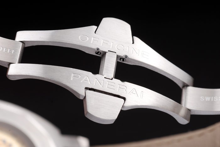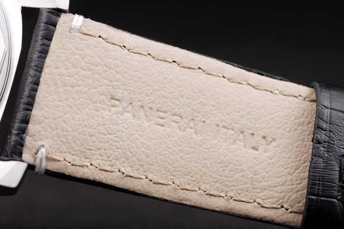 This watch has AR glass. The face color will appear different colors depending on how the light falls on it. Back: Brushed stainless steel snap-in back with Officine Panerai Replica engraving Gender: UominiMovement: Cinetico (Automatico) Quality: Giapponese Miyota Color: Nero Case: Brushed stainless steel case Bracelet: Black crocodile leather strap with white stitching and heat embossed Officine Panerai Replica Italy stamp and brushed stainless steel fold-in hook clasp with Panerai Replica engraving Bracelet Length: 217 x 24 mm Bezel: Polished stainless steel bezel with tachymeter Band Type: Pelle Diameter: 55 x 45 mm Watch Clasp: Flip Clasp Glass: Sapphire Crystal Crown: Brushed stainless steel cutwork crown enclosed within an arched protection with two push-button crowns on either side of it Case Thickness: 15 mm