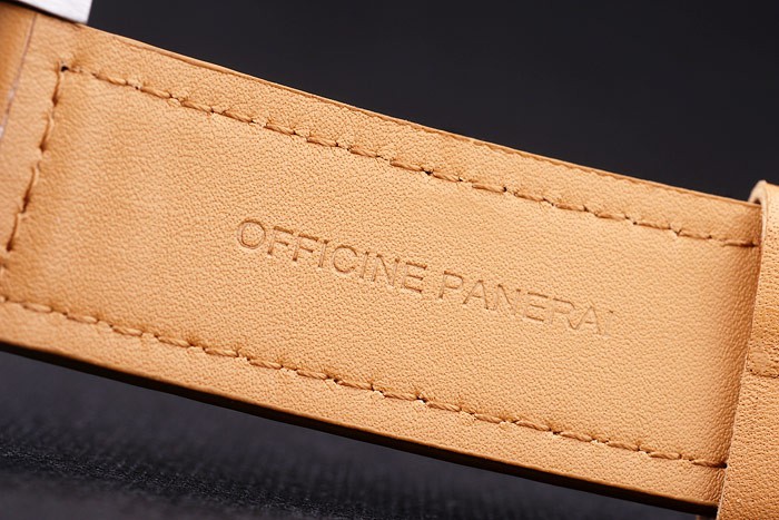 Back: Stainless steel snap-in back with Officine Panerai Replica engravings Gender: UominiMovement: Cinetico (Automatico) Quality: Giapponese Miyota Case: Brushed Stainless Steel Case Bracelet: Heat embossed Officine Panerai Replica Italy stamped tan leather strap with stainless steel hook-buckle clasp Bracelet Length: 240 x 26 mm Bezel: Stainless steel cutwork bezel with Arabic and index minute markers Diameter: 58 x 47 mm Watch Clasp: Buckle Glass: Sapphire Crystal Crown: Stainless steel cutwork crown with protective case and a push-button crown on the opposite side Case Thickness: 21 mm