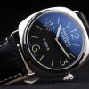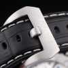 Bracelet: Black crocodile leather strap with white stitching and heat embossed Officine Panerai Replica Italy stamp and brushed stainless steel hook-buckle clasp with Panerai Replica engraving