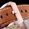 Bracelet: Brown crocodile leather strap with white stitching and heat embossed Officine Panerai Replica Italy stamp and 18k rose-gold plated hook-buckle clasp with Panerai Replica engraving