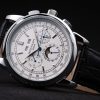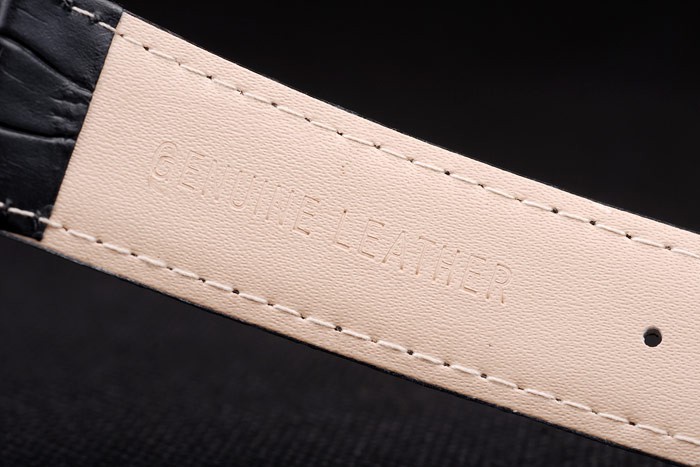 Bracelet: Black crocodile leather strap with heat embossed Patek Philippe Replica stamp and polished stainless steel hook-buckle clasp with Patek Philippe Replica engraving