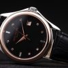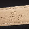Bracelet: Black crocodile leather strap with heat embossed Patek Philippe Replica stamp and 18k rose-gold plated hook-buckle clasp with Patek Philippe Replica engraving