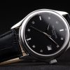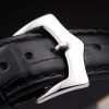 Bracelet: Black crocodile leather strap with heat embossed Patek Philippe Replica stamp and polished stainless steel hook-buckle clasp with Patek Philippe Replica engraving