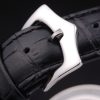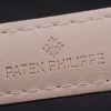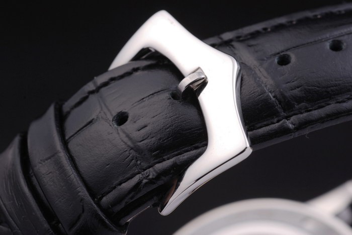 Bracelet: Black leather strap with Patek Philippe Replica stamp and a stainless steel hook buckle clasp