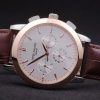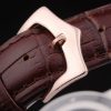 Bracelet: Rich brown leather strap with Patek Philippe Replica stamp and a rose gold hook buckle clasp