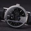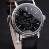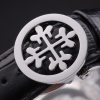 Bracelet: Black leather strap with Patek Philippe Replica stamp and a stainless steel fold in clasp with a Patek logo buckle