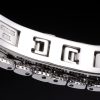 Bracelet: Finely linked pinhole patterned polished stainless steel bracelet with hidden clasp