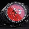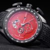 Bracelet: Tyre-groove black rubber strap with heat embossed Porsche Replica stamp and ion-plated hook-buckle clasp with Porsche Replica inscription