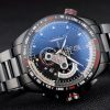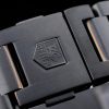 This watch has AR glass. The face color will appear different colors depending on how the light falls on it. Back: Ion-plated screwed down back with Tag Heuer Replica Carrera engravings Gender: UominiMovement: Quarzo (Batteria) Quality: Giapponese Miyota Color: Nero Case: Ion-plated stainless steel case Bracelet: Ion-plated link bracelet with Tag Heuer Replica logo engraved push-release hidden clasp Bracelet Length: 190 x 22 mm Bezel: Ion-plated bezel with tachymeter Diameter: 50 x 43 mm Chronograph: Si Watch Clasp: Butterfly Clasp Glass: Sapphire Crystal Crown: Ion-plated cutwork crown with Tag Heuer Replica logo and red band trim and two long push-button crowns on either side of it plus a logo engraved ion-plated crown with red band trim on the opposite top corner Case Thickness: 15 mm