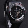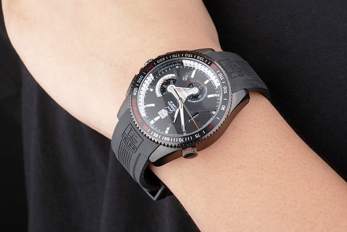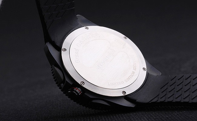 Back: Ion-plated stainless steel screwed down case back with Tag Heuer Replica engravings Gender: UominiMovement: Quarzo (Batteria) Quality: Giapponese Miyota Color: Nero Case: Ion-plated stainless steel case Bracelet: Textured black rubber strap with heat embossed Tag Heuer Replica stamp and engraved hook-buckle clasp Bracelet Length: 210 x 22 mm Bezel: Ion-plated stainless steel cutwork bezel with glossy black tachymeter Band Type: Gomma Diameter: 50 x 45 mm Watch Clasp: Flip Clasp Glass: Sapphire Crystal Crown: Ion-plated stainless steel cutwork crown with Tag Heuer Replica logo plus two additional crowns on either side and one on the opposite top corner Case Thickness: 17 mm